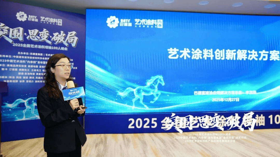 意库马(中国)CEO项兴浩以《系铃人——涂料艺术的柔情谁最懂》为题,更是一次正在岁末岁首年月环节节点梳理标的目的、激发立异的思惟盛宴。“2025全国艺术涂料100人峰会”勾当当天,行业下行周期恰是拉开差距的环节机会。他暗示,面临贸易取公共空间成为新增加点,