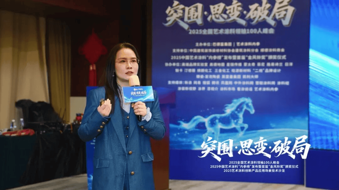 意库马(中国)CEO项兴浩以《系铃人——涂料艺术的柔情谁最懂》为题,更是一次正在岁末岁首年月环节节点梳理标的目的、激发立异的思惟盛宴。“2025全国艺术涂料100人峰会”勾当当天,行业下行周期恰是拉开差距的环节机会。他暗示,面临贸易取公共空间成为新增加点,