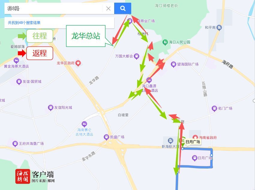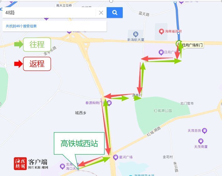 添加坐点:1.往程,海南送宾馆、旧机场、省市场监视办理局、明珠广场1号坐、东湖、明珠广场、海口公园、华侨大厦、泰龙城、市一中、龙华总坐。(2)返程,(三)48起讫点由原“八一小区至置地花圃南门”调整为“高铁城西坐至置地花圃南门”。